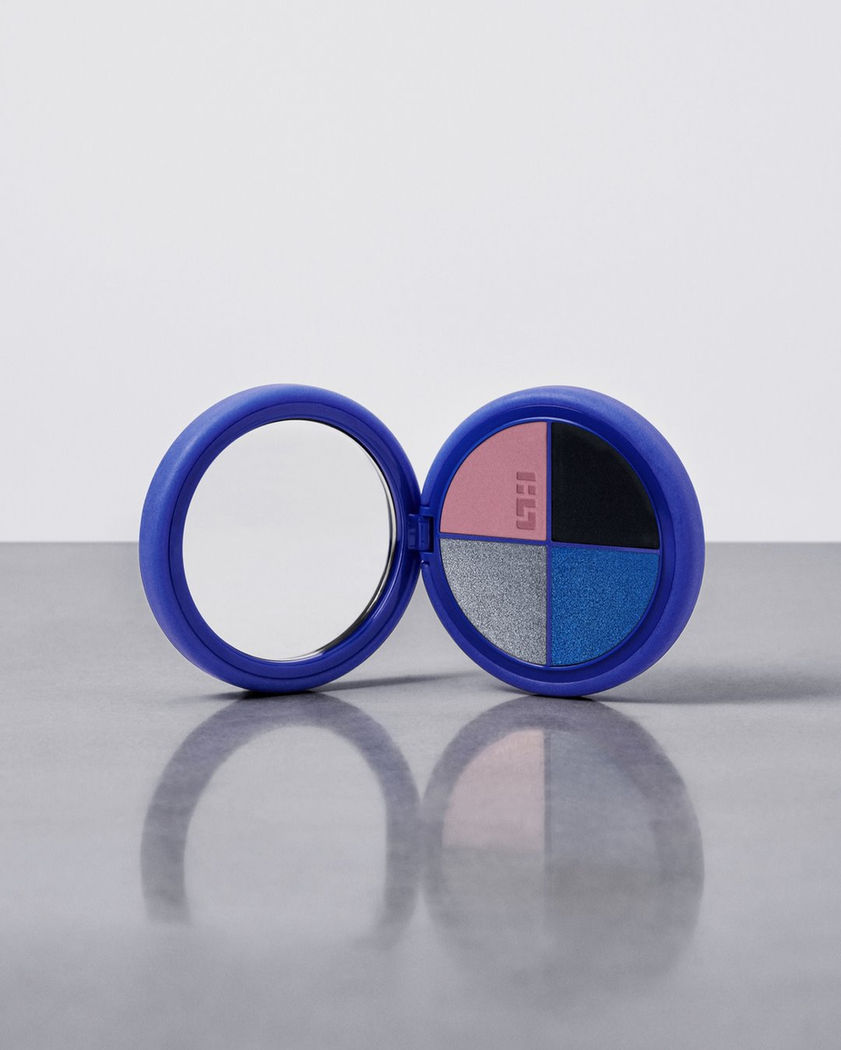 Somewhere in the galaxy, a swirl of light emerges. The AM/PM Magnetic Eye Quad in Milky Way features celestial blue, glittering silver, aurora pink, and inky black shades that can be worn alone, or blended together for a galaxy-inspired look. Apply pigments dry for a sheer effect, or dampen your eye shadow brush to amplify color-payoff into a creamy paint.
