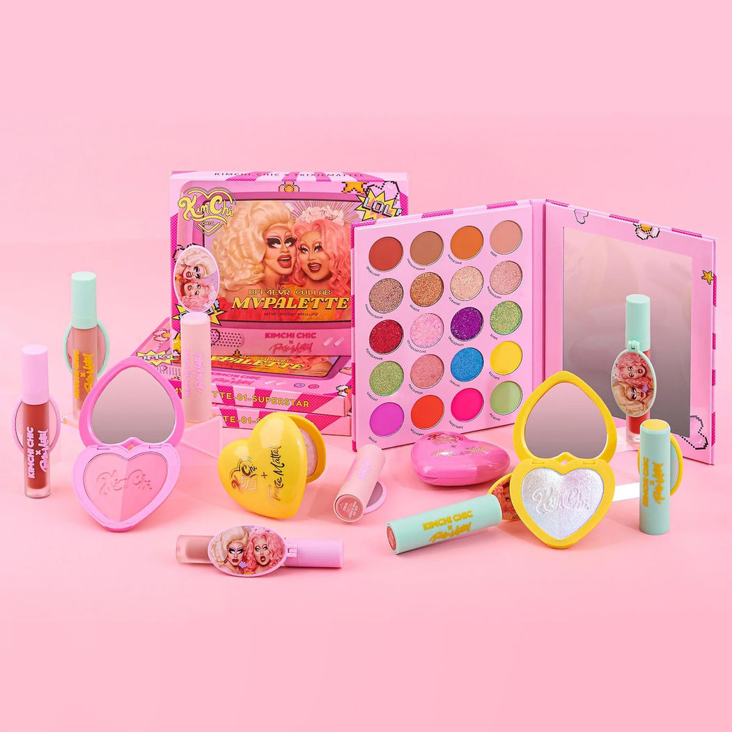 BRB, packing on this blush. This Pink Era blush duo comes with a flirty cool baby pink and a hot magenta to transform your cheeks from day to night…or pedestrian to drag. You can also mix them for the best of both shades! In the KimChi Chic x Trixie world, there’s no such thing as too much blush.